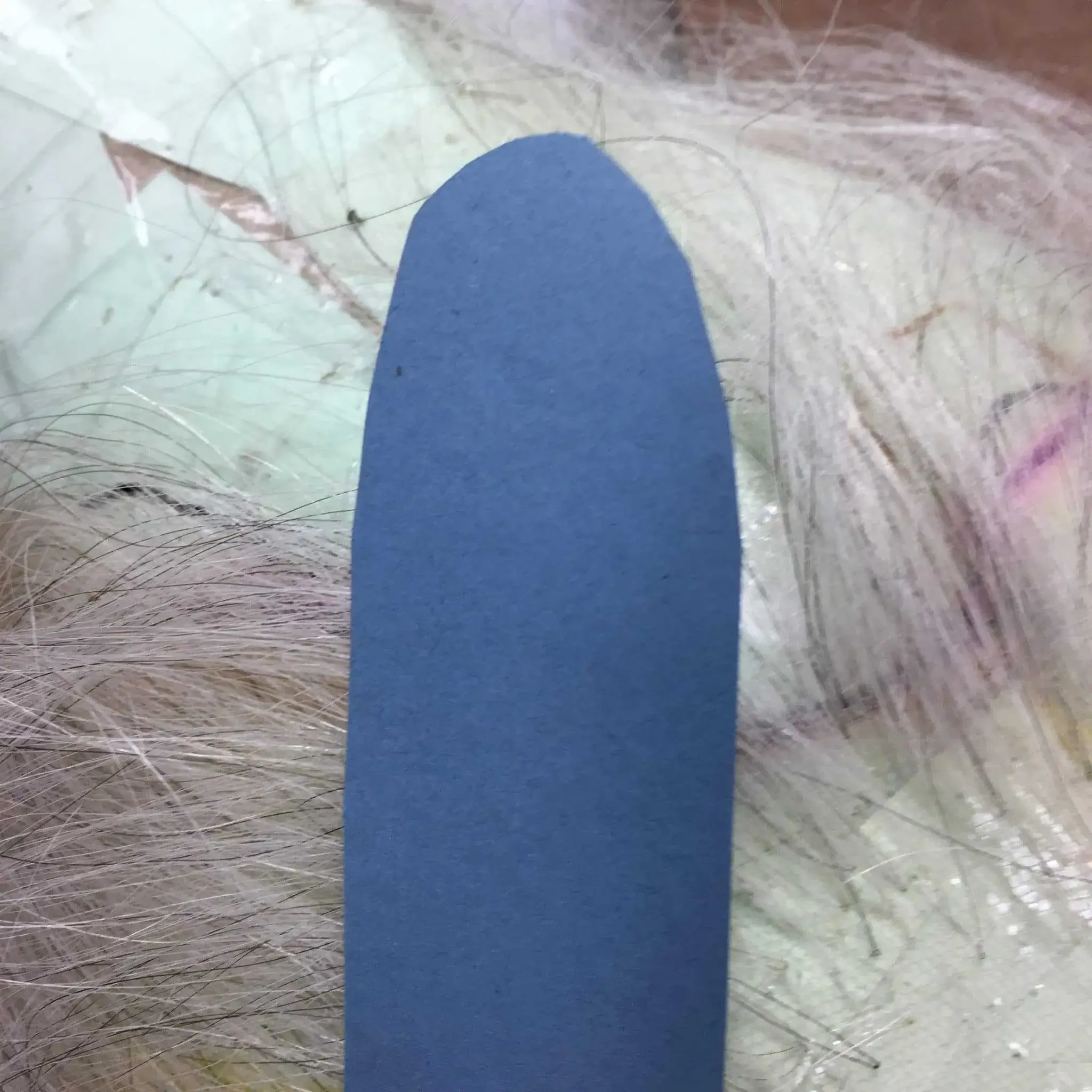 A dark colour cardboard tongue helps to eliminate shine and makes the foundation lace more visible when ventilating or knottting a wig